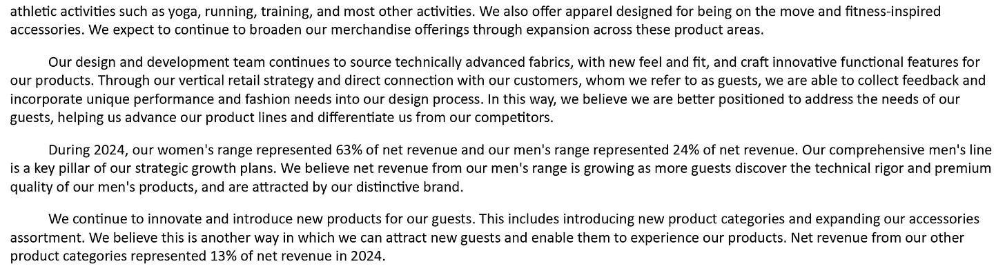 But the reality is that LULU’s got a fantastic secrets moat. Along with the design and appeal of the clothing, the proprietary fabrics used are unique to the company. While competitors can copy the “look” of LULU products, they have so far struggled to copy the “feel” (more on this another day I promise.)